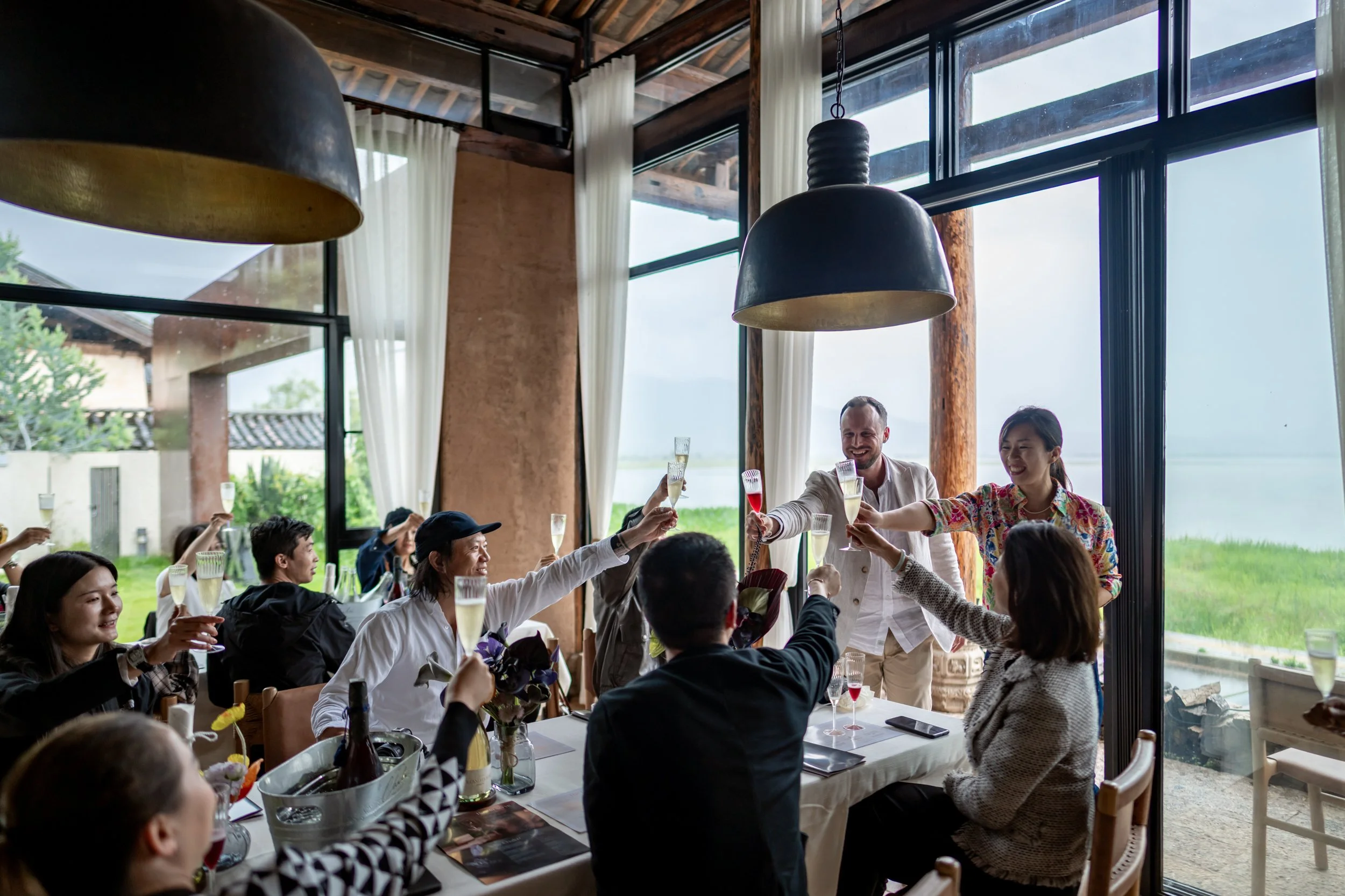 Founders Fraser and Mia raise a glass at LUX* Tea Horse Road’s Lashi Lake resort